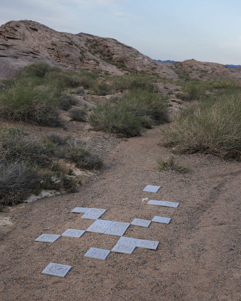 Installation view of Sea Lily (2025), Strata, Toli, Xinjiang, 5 - 20 August 2025, curated by 149 Art. Sea Lily is installed alongisde Romane Courdacher's tile works.